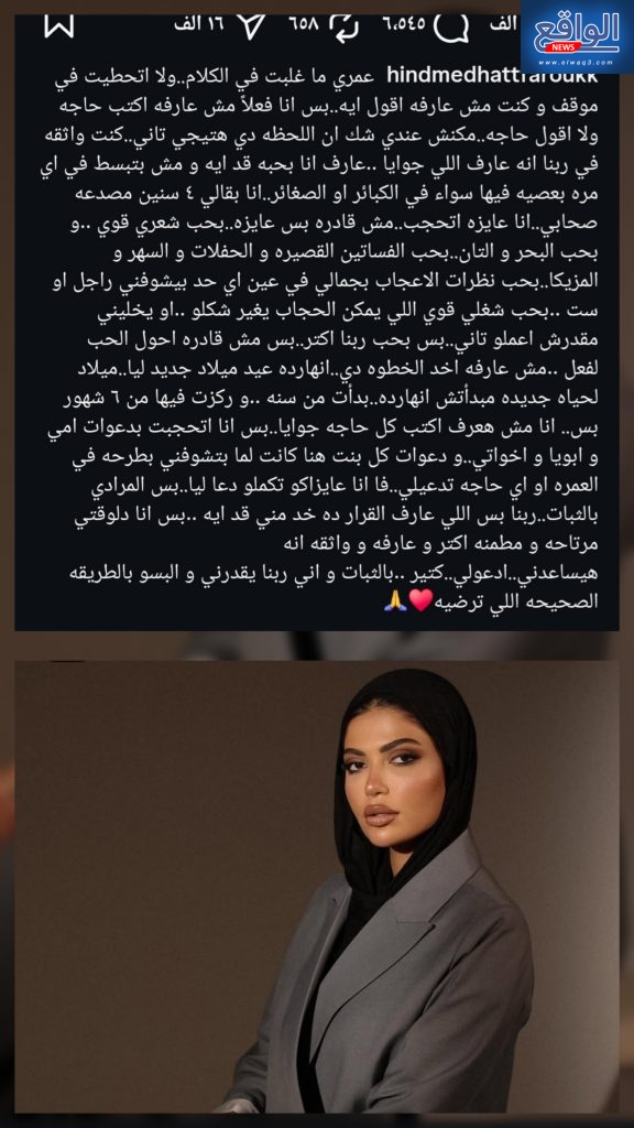 هند مدحت تعلن ارتداء الحجاب وتعتبره بداية حياة جديدة