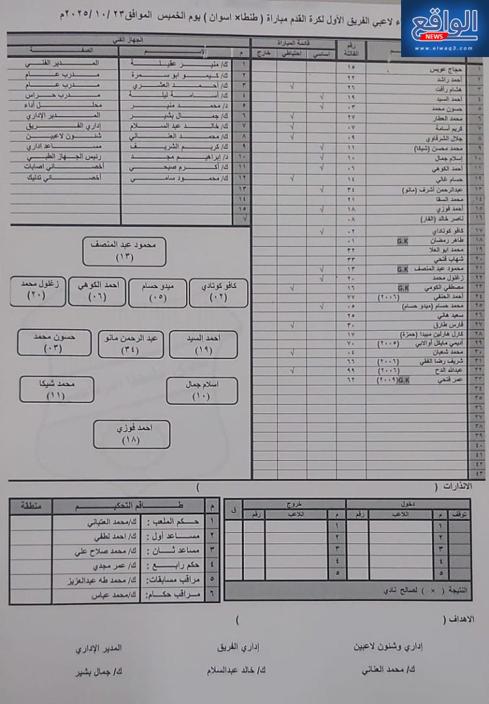 وشهد التشكيل قيادة الثلاثي إسلام جمال واحمد فوزي ومحمد شيكا لخط الهجوم، وجاء تشكيل طنطا لمواجهة اسوان كالٱتي:-